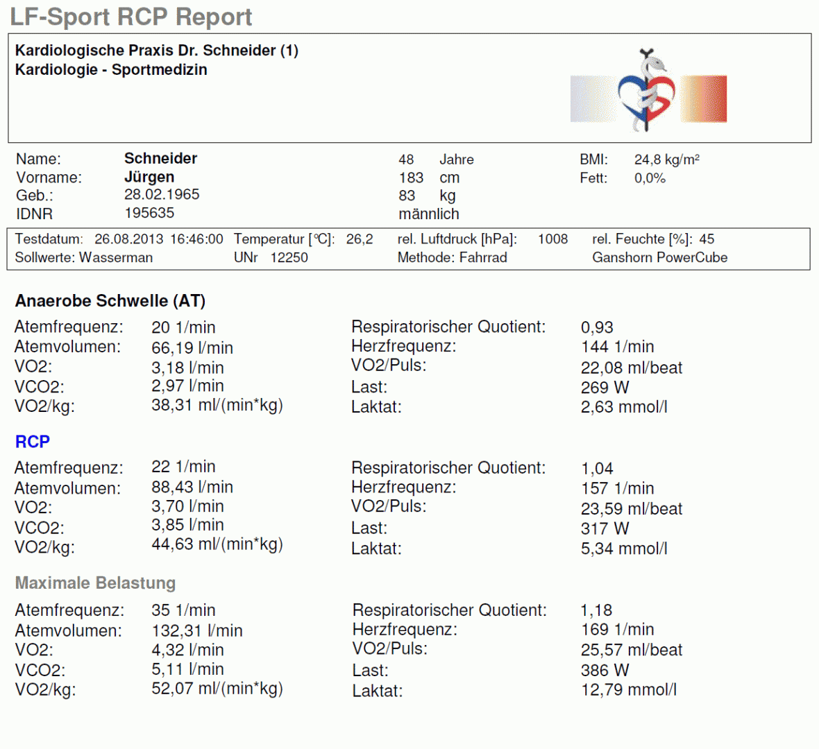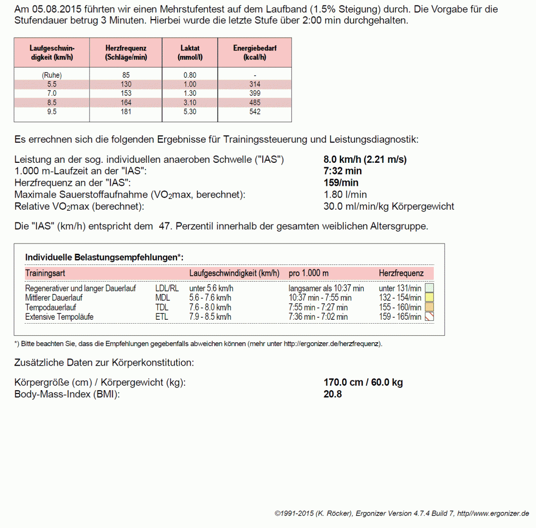 Zur exakten Bestimmung der maximalen Leistungsfähigkeit, die in der Sportmedizin mit der maximalen Sauerstoffaufnahme (VO2max) beschrieben wird, sind spiroergometrische Daten notwendig. Bei einem Laktattest ohne Spiroergomtrie kann die VO2max nur abgeschätzt werden.